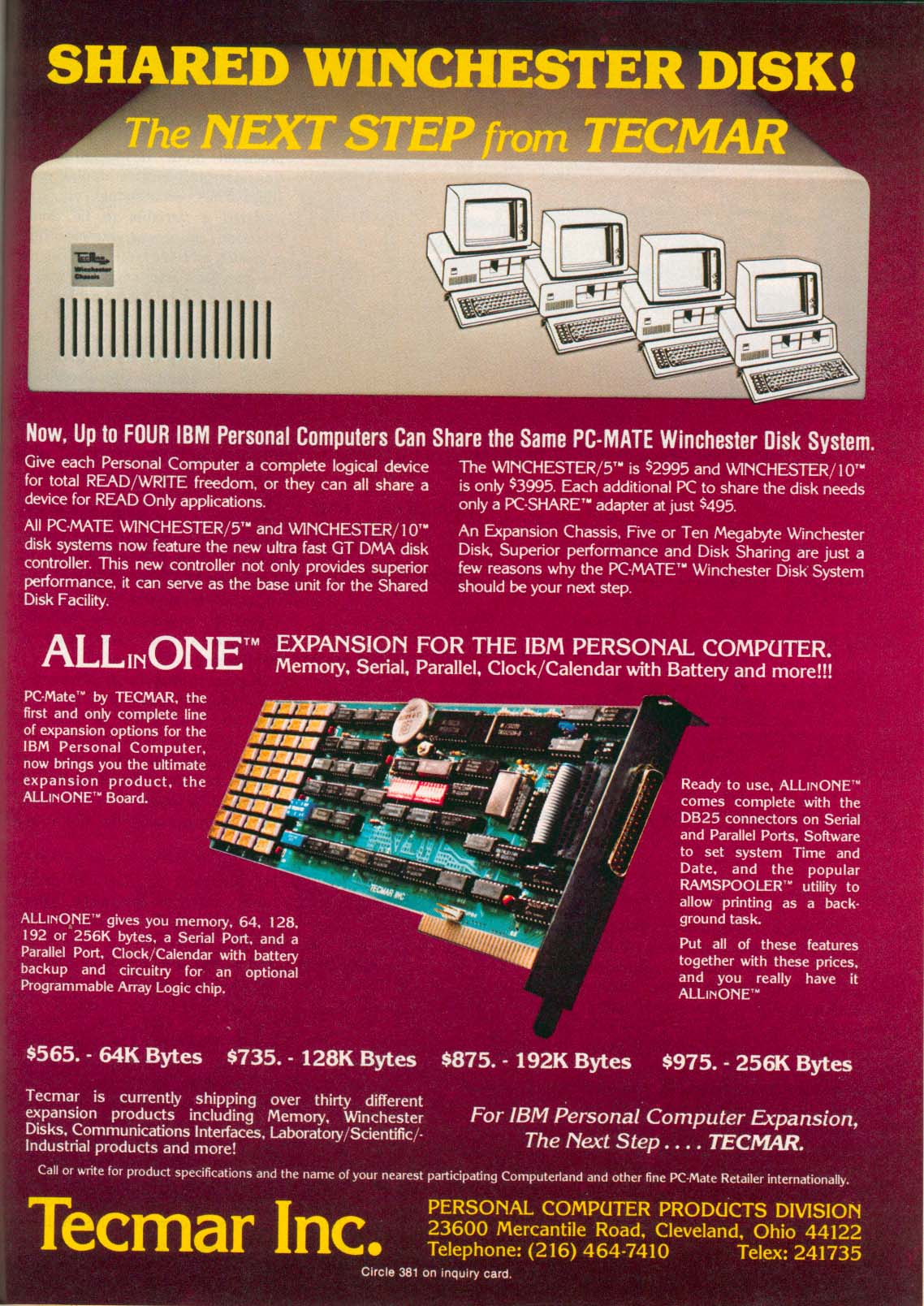 Cleveland Ohio - the name "Tecmar" being